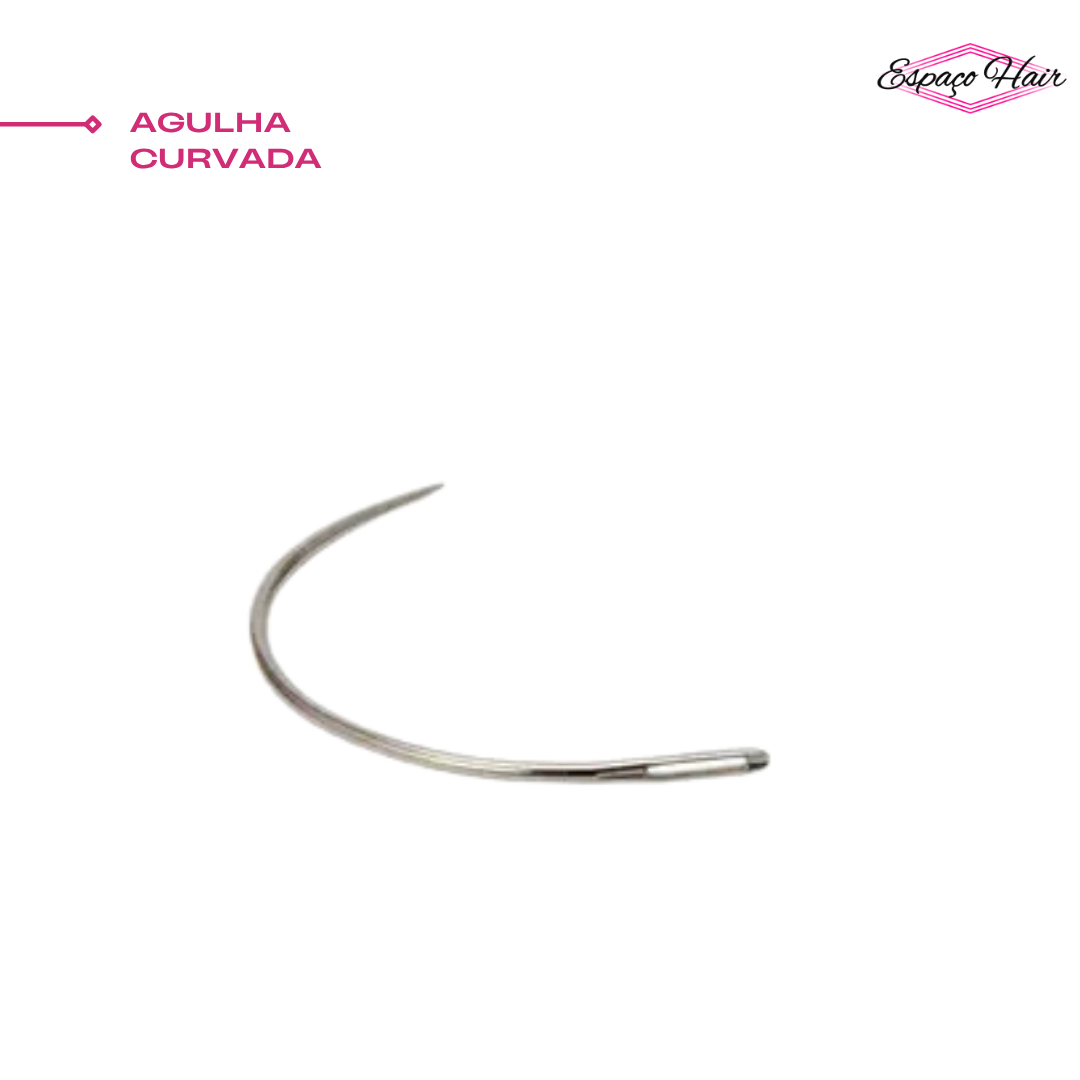 Sua curvatura facilita a passagem da agulha através da trança embutida e da tela de cabelo, permitindo movimentos circulares e alcançando pontos de difícil acesso de forma mais prática do que uma agulha reta.