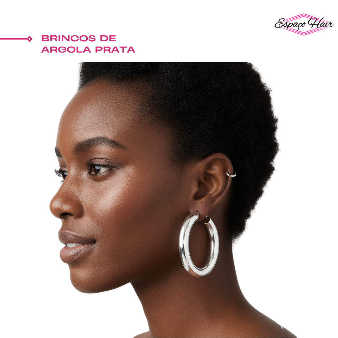 Brincos de Argola: Um clássico atemporal, disponível em tamanhos pequenos, médios e grandes, e em versões lisas ou com pedrarias