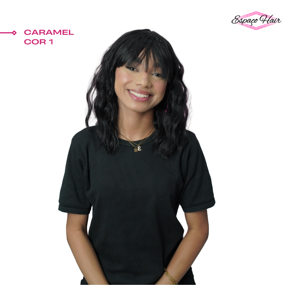 A wig caramel possui franja