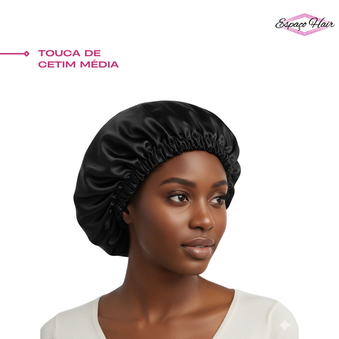 A touca de cetim básica tamanho médio é um acessório popular de cuidados capilares, utilizada principalmente para prevenir o frizz, manter a hidratação e proteger o cabelo durante o sono. Ela é considerada "básica" por ter uma única camada de cetim, diferentemente dos modelos dupla face.